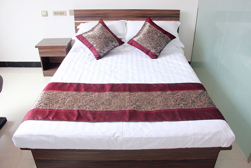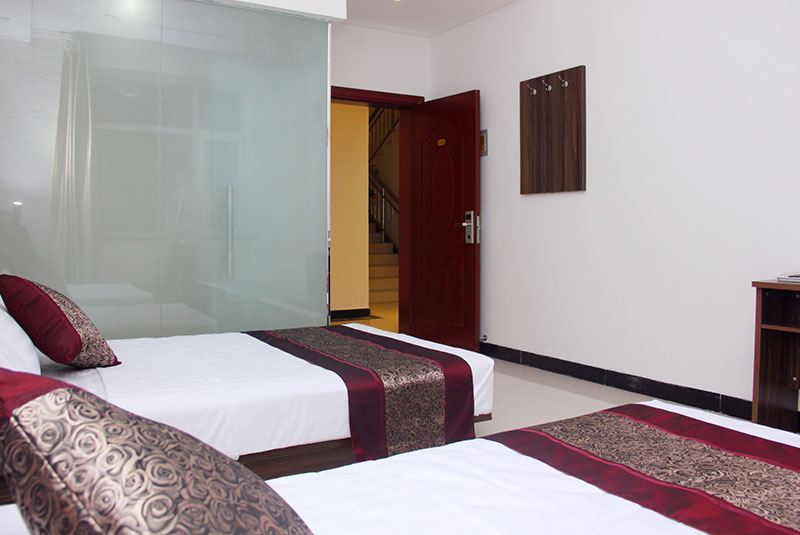 房间配置:单人床、床头柜、液晶电视、电视柜、电热水器、电热水壶、独立卫浴间